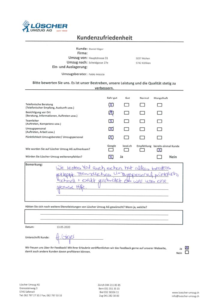 Lüscher Umzug AG – Standorte